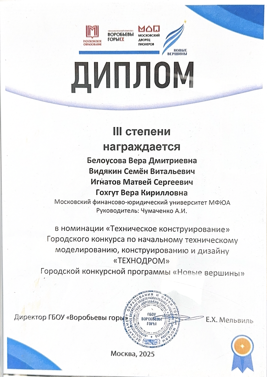 Детский технопарк «Наукоград» МФЮА и МАСИ входит в сеть детских образовательных учреждений, курируемых Департаментом предпринимательства и инновационного развития города Москвы.